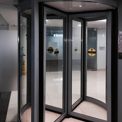 ENTRANCE SOLUTION’s superior designs for revolving doors provide an imposing entrance to any building, while serving as an airlock as well, to minimize a building’s heating and air conditioning losses, therefore maximizing energy savings. 3/4 wing revolving door is one of our best selling models are not only elegant but also economical and practical.